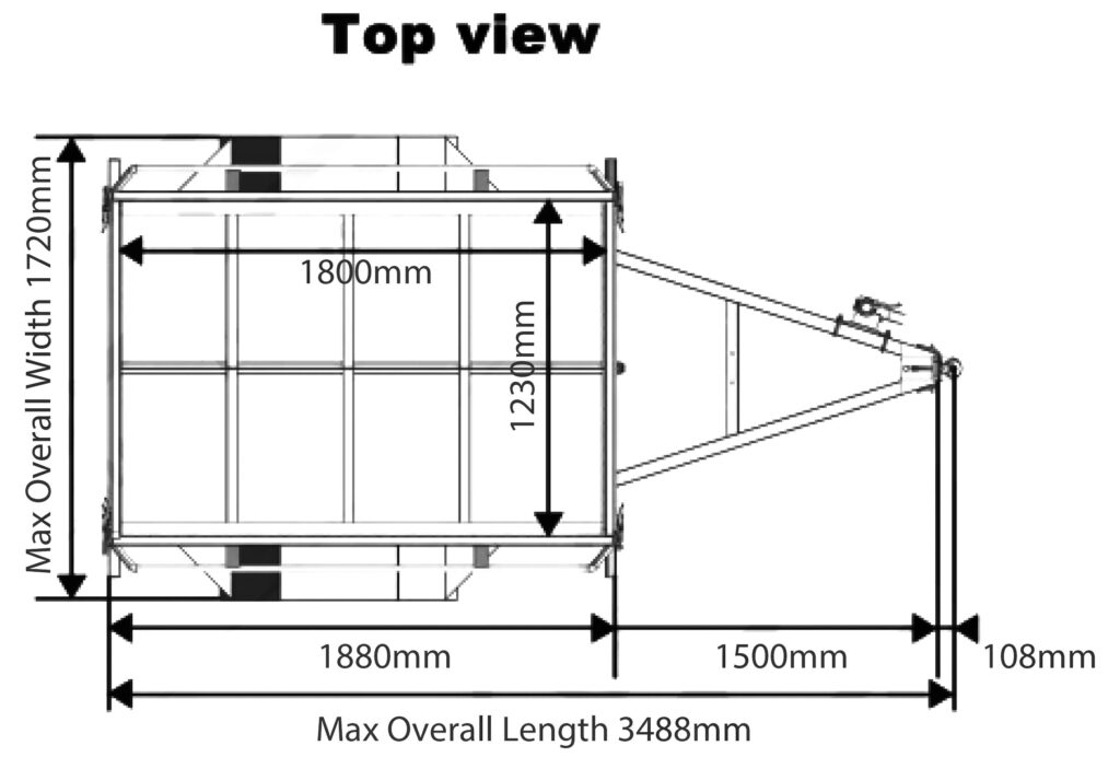 - Internal Trailer Size: 1800mm x 1230mm x 300mm